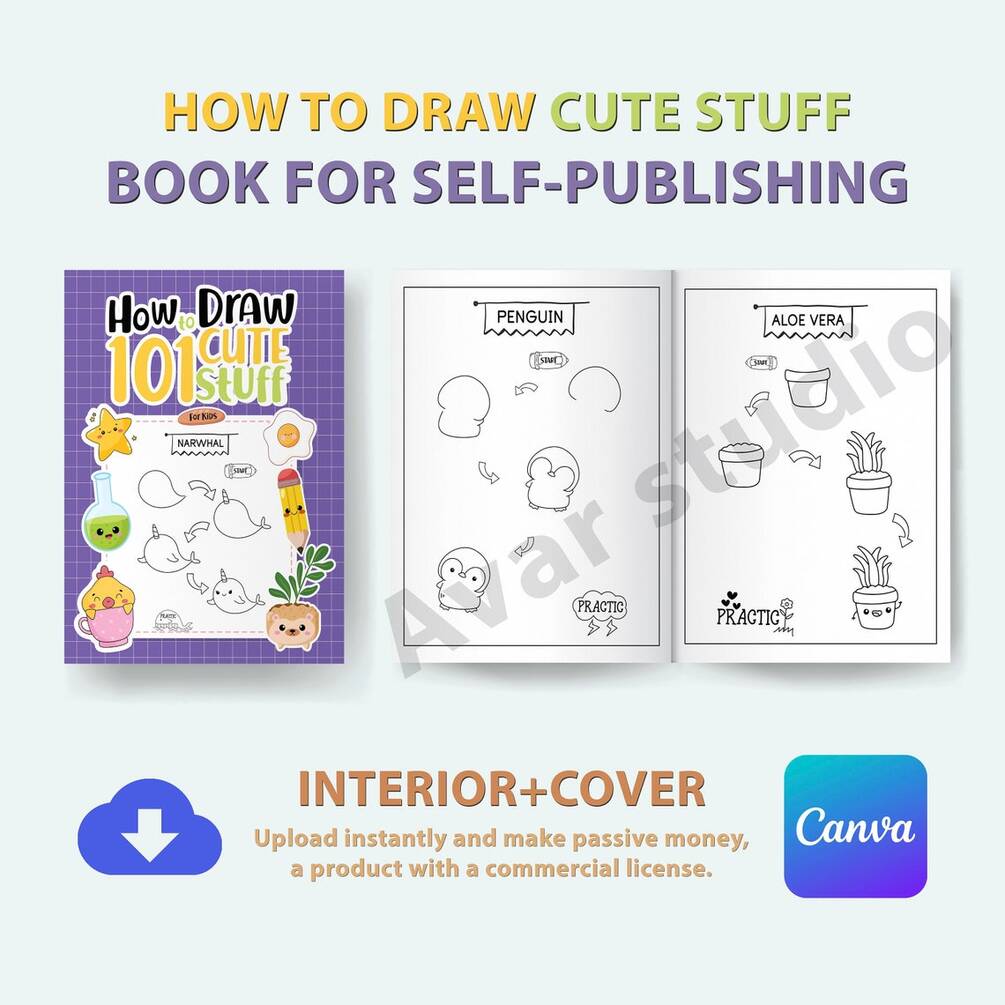 Learn to Draw Cute Stuff | Kdp Interiors and Cover Book for SELF-PUBLISHING with Commercial License - Editable Canva